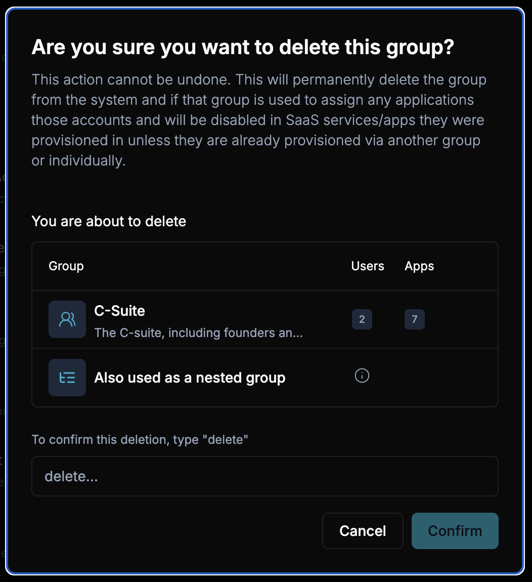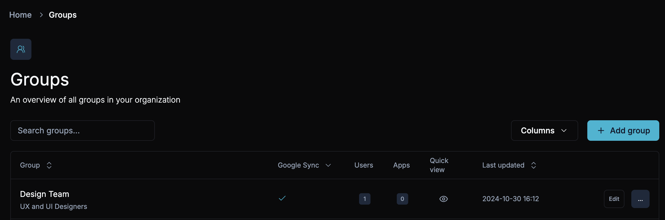 Weâve made it easier to get a clear view of your groups. Now, you can see at a glance how many users and apps are tied to each group. This helps validate whether your group setups match your expectations. Weâve also combined group names and descriptions for a cleaner look and improved the quick-view area for easier access to key details.