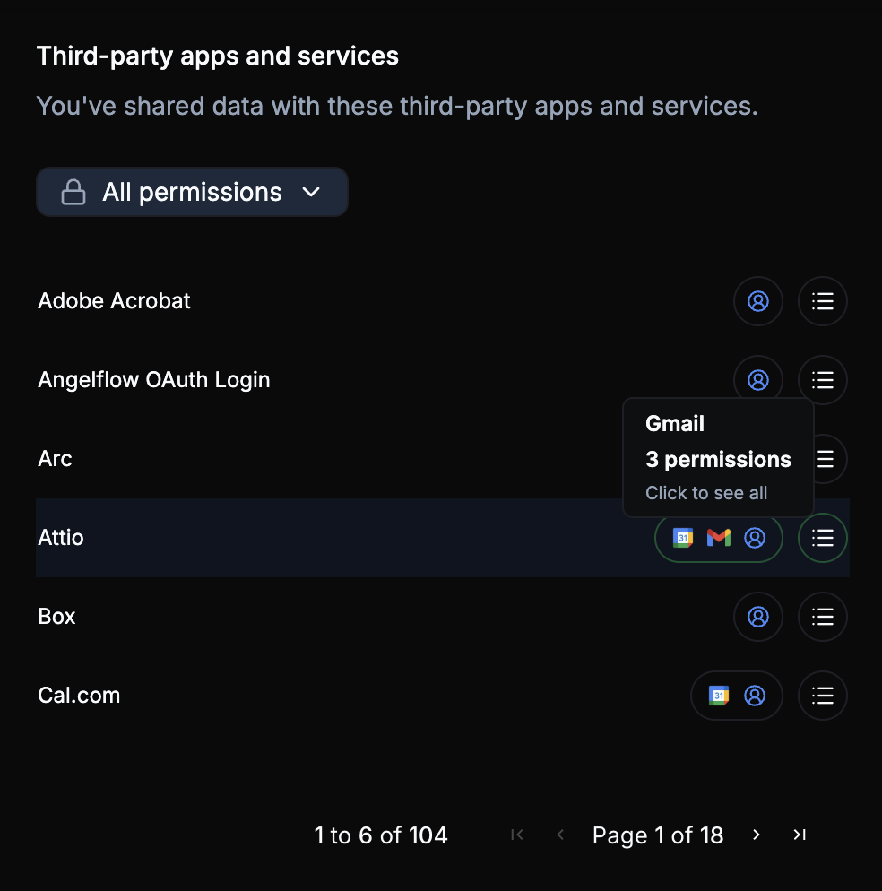 đ Youâll now see hover details showing how many permissions each app has â and when you click the icons, youâll see all permissions for that app across services in one clean view.