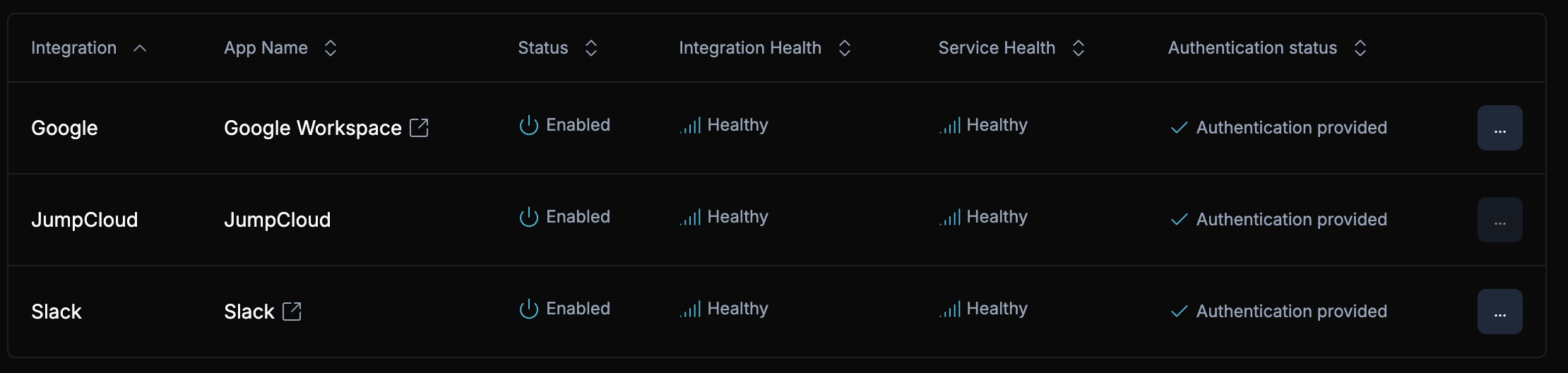 From here, you can manage authentication to services like Google Workspace, JumpCloud, or BambooHR.