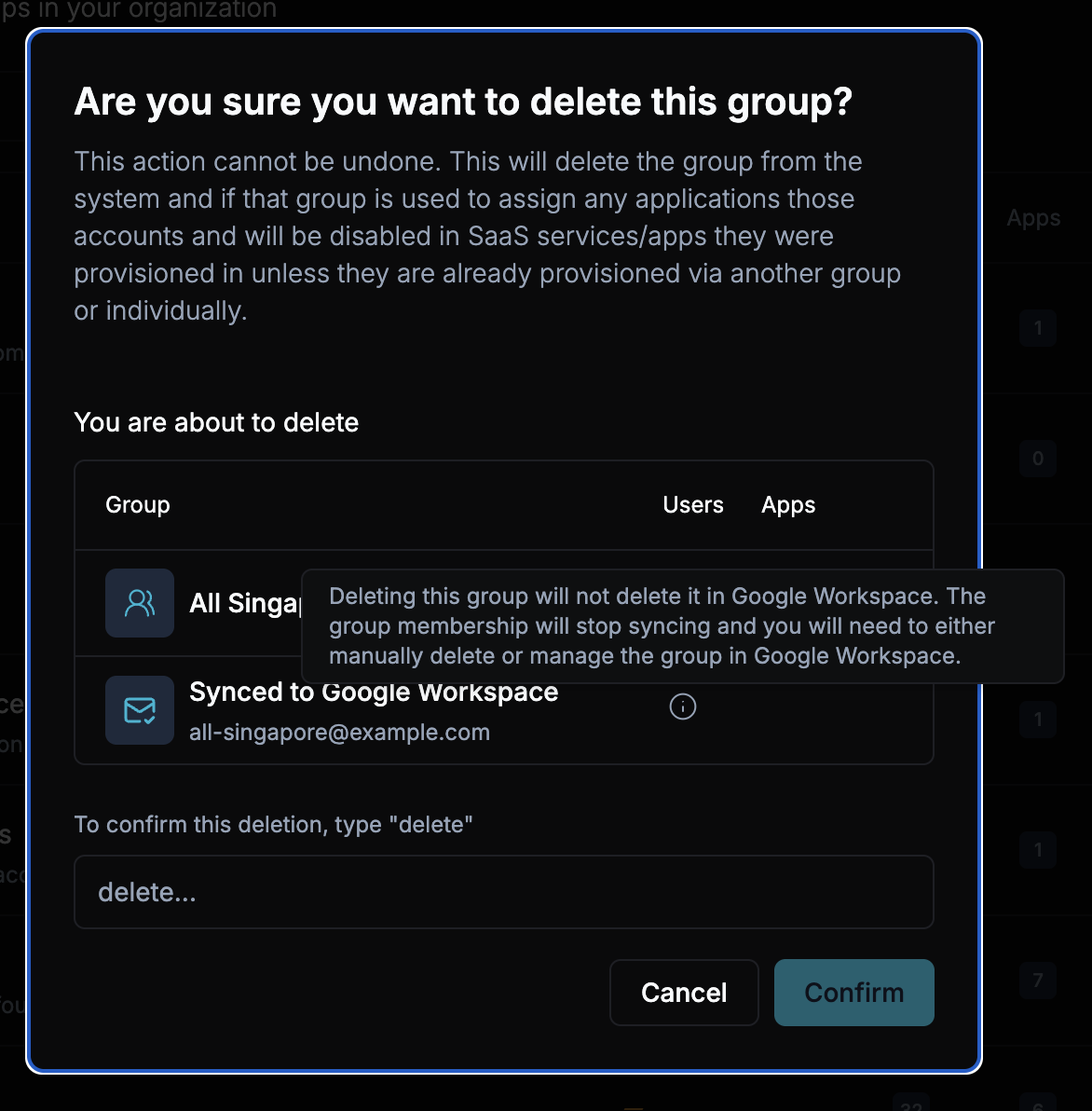 To make things even easier, weâve added a new status view in the Group Management area, showing which groups are actively synced to Google Workspace. This feature offers clear visibility and better control over which groups are integrated, so you can manage them effortlessly in one place.