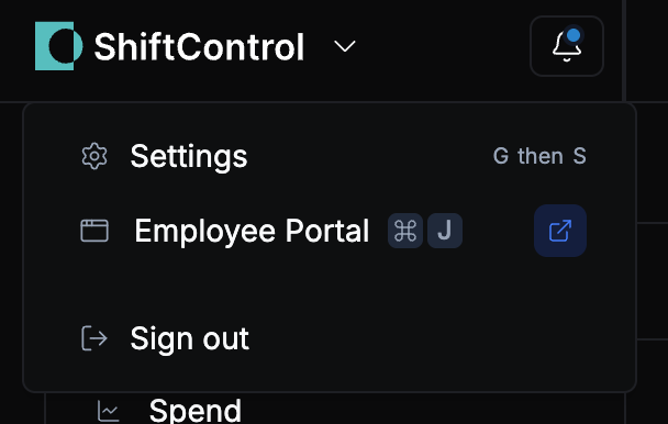 You can now jump between the Employee Portal and Admin Portal in a flash! Use â/Windows + J to toggle instantly, or open the ShiftControl menu to switch portals â either in the same tab or a new one.